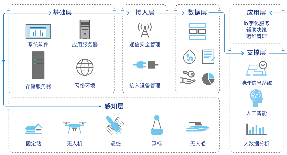 針對(duì)河流、湖泊、水庫(kù)及地下水等我國(guó)城市飲用水的主要水源地,構(gòu)建源水立體化監(jiān)控預(yù)警系統(tǒng),用于高效發(fā)現(xiàn)風(fēng)險(xiǎn)源和水質(zhì)問(wèn)題。該系統(tǒng)可動(dòng)態(tài)、準(zhǔn)確、實(shí)時(shí)監(jiān)測(cè)目標(biāo)水域的水質(zhì)、氣象、水文等數(shù)據(jù)信息,實(shí)現(xiàn)對(duì)源水水質(zhì)污染、水體富營(yíng)養(yǎng)化及水華等災(zāi)害的科學(xué)預(yù)警,提供規(guī)范化的運(yùn)維及應(yīng)急保障服務(wù),為本系統(tǒng)的運(yùn)行及數(shù)據(jù)有效性提供堅(jiān)實(shí)的后端保障。