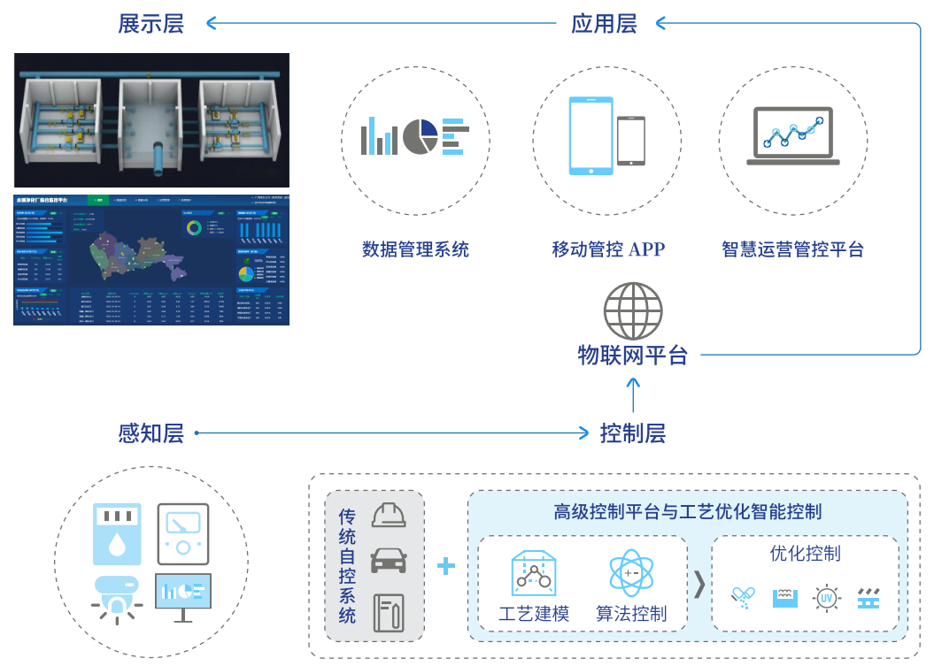 二次供水管理運用“物聯(lián)網”“云計算”“大數(shù)據(jù)”等技術,建立智能化的運行管控平臺,實現(xiàn)水廠的全流程自動化控制,數(shù)字化運維管理、全生命周期的設備資產管理,一體化安防管控及科學決策輔助,為水廠安全可靠運行,生產水質優(yōu)良穩(wěn)定提供保障,降低水廠生產的能耗、藥耗,并通過集中化運營、少人/無人值守模式轉變,實現(xiàn)管理提升和減員增效。
