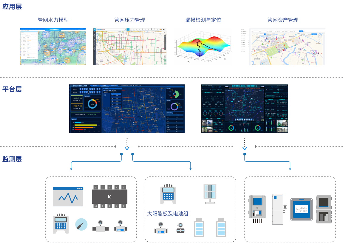 供水管網(wǎng)系統(tǒng)是城市的重要基礎(chǔ)設(shè)施,就像人體的“神經(jīng)”和“血管”擔(dān)負(fù)著城市的輸送、調(diào)配及傳輸?shù)裙ぷ?。城市供水管網(wǎng)監(jiān)測自動監(jiān)測系統(tǒng)是以全面、準(zhǔn)確、實時動態(tài)的供水管網(wǎng)監(jiān)測數(shù)據(jù)為基礎(chǔ),處理以監(jiān)測數(shù)據(jù)、管網(wǎng)、地形為核心的空間信息以及其相關(guān)信息的綜合信息系統(tǒng)??杀O(jiān)控供水水質(zhì)、流量、壓力、水位、余氯、視頻等參數(shù)及監(jiān)測站點的基礎(chǔ)信息,實現(xiàn)水質(zhì)風(fēng)險的預(yù)警報警,并提供運(yùn)維及應(yīng)急保障服務(wù)。