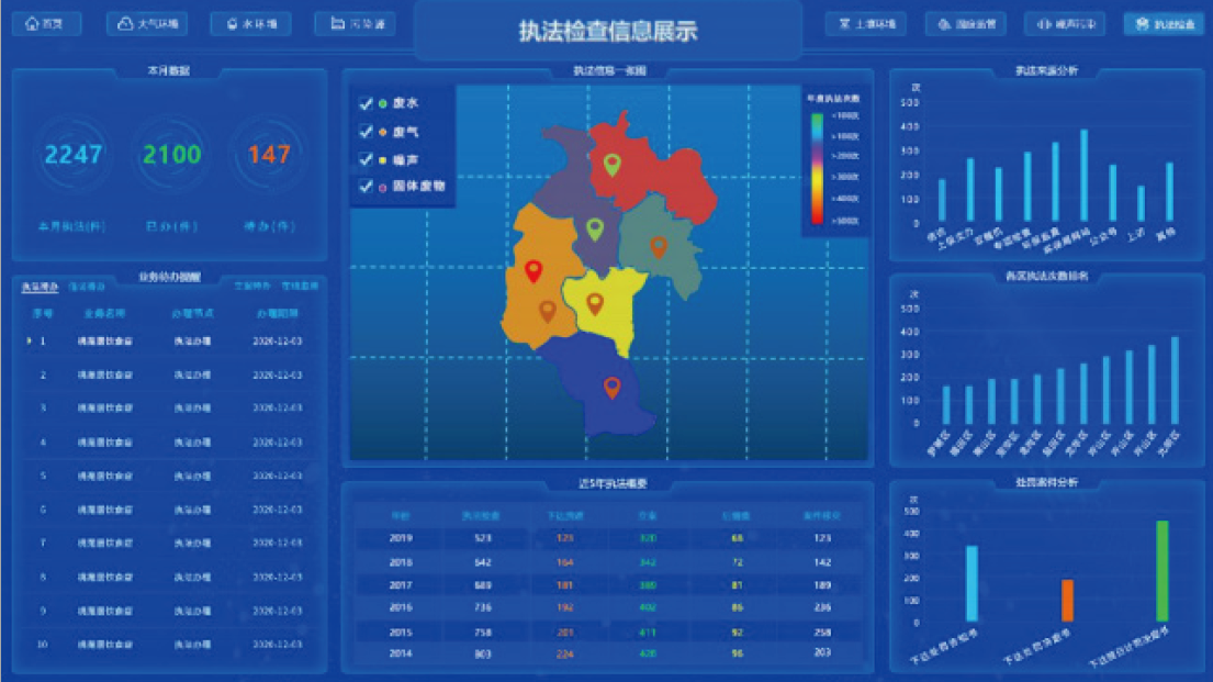 系統(tǒng)遵循“分類監(jiān)管”原則,瞄準(zhǔn)“精準(zhǔn)高效”目標(biāo),提升精準(zhǔn)化、 智能化、社會(huì)化的發(fā)現(xiàn)能力,強(qiáng)化非現(xiàn)場(chǎng)監(jiān)管機(jī)制,以自動(dòng)監(jiān)控為非現(xiàn)場(chǎng)監(jiān)管的主要手段,在污染物排放濃度自動(dòng)監(jiān)測(cè)基礎(chǔ)上融合視頻監(jiān)控和環(huán)保設(shè)施用水、用電監(jiān)控等物聯(lián)網(wǎng)監(jiān)管手段,利用大數(shù)據(jù)分析實(shí)現(xiàn)預(yù)警管理,提升智能化發(fā)現(xiàn)問(wèn)題能力。