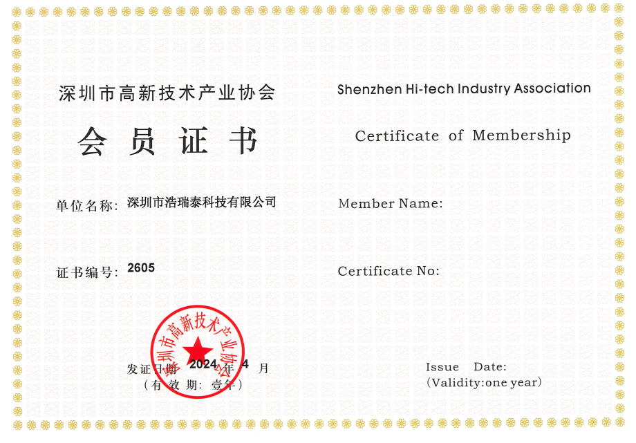 深圳市高新技術(shù)產(chǎn)業(yè)協(xié)會(huì)會(huì)員證書